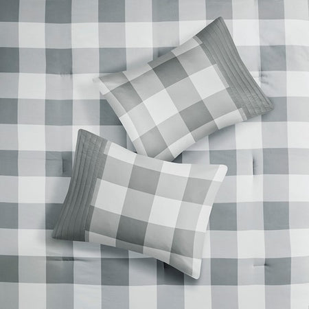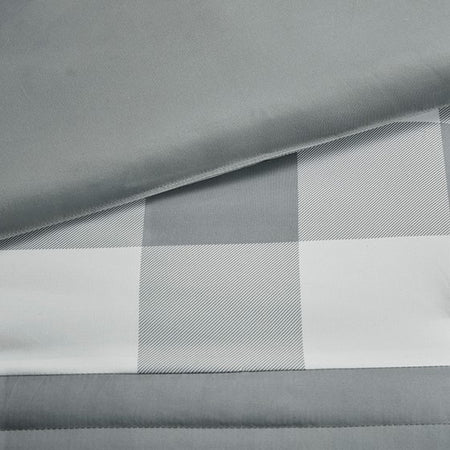- A sophisticated gingham plaid design in white and grey that is easy to coordinate the bedroom decor
