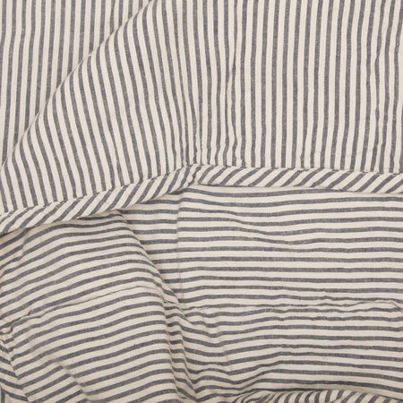 Cozy and refreshing the Hatteras Seersucker Blue Ticking Stripe Queen Quilt Coverlet 90Wx90L gives off a cool ocean breeze, vintage vibe. Featuring popular ticking stripes in denim blue and cotton white with quality seersucker material to enjoy for years to come. This farmhouse style coverlet reverses to the same as the front.