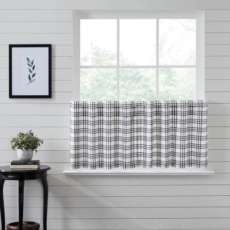 Create the perfectly charming country window of your dreams with these 24x36 inch tier-style curtains. Featuring country black and soft white plaid, the Sawyer Mill Black Plaid Tier Set provides just the right balance of privacy and sunshine. Pair with a matching valance or prairie swag for a fully decorated look or alone for a simple pop of color and character. Also known as cafe or bistro curtains, these are a particularly good fit for decorating farmhouse kitchens, laundry rooms, and small bathroom windows.
