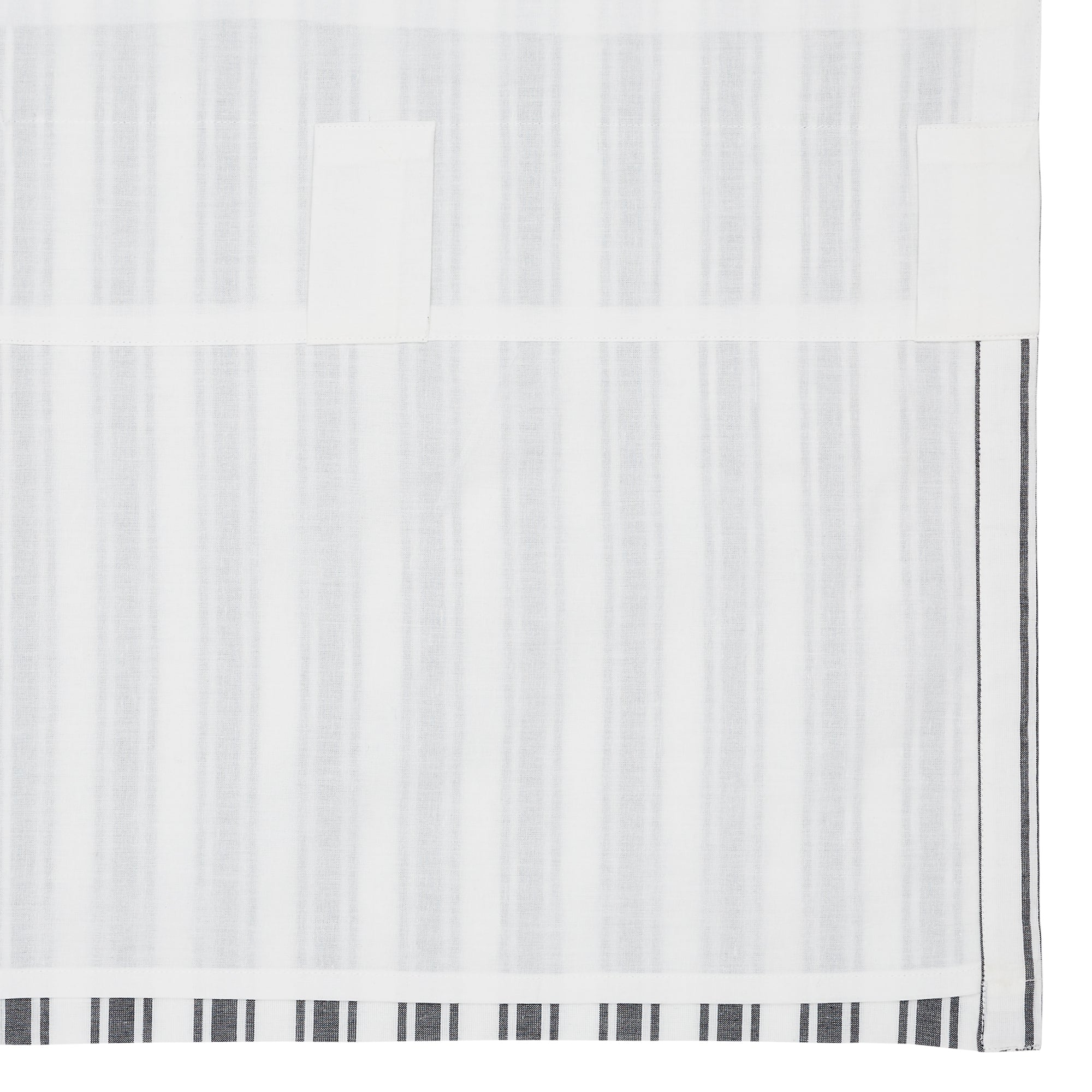 Create a clean, modern farmhouse look for your home. The Sawyer Mill Black Ticking Stripe Valance 16x60 features beautiful black striping over a white base to create a classic farmhouse ticking stripe pattern. Includes a soft, white cotton lining to filter sunlight and prevent fading. A rod pocket and loops offer easy hanging options.