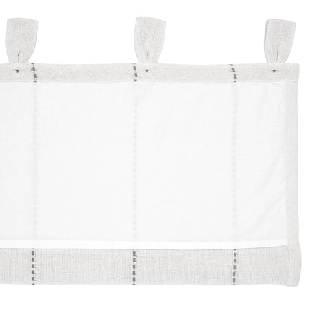 Transform your home with simple, country-style details. The Stitched Burlap White Valance 16x60 features clean white burlap coloring and charming stitched detailing in dove gray. Tabs included for easy hanging with button details for style. Lined for additional privacy.