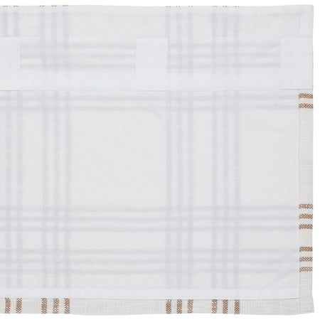 Soft colors in a classic plaid. The Wheat Plaid Valance 19x60 features a white base with golden tan striping in a classic plaid pattern. The beautiful fabric blends easily with your home and provides a great base for mixing and matching with other patterns to create a look all your own. Lined to prevent fading and provide extra privacy, this valance includes a rod pocket and loops for easy hanging.