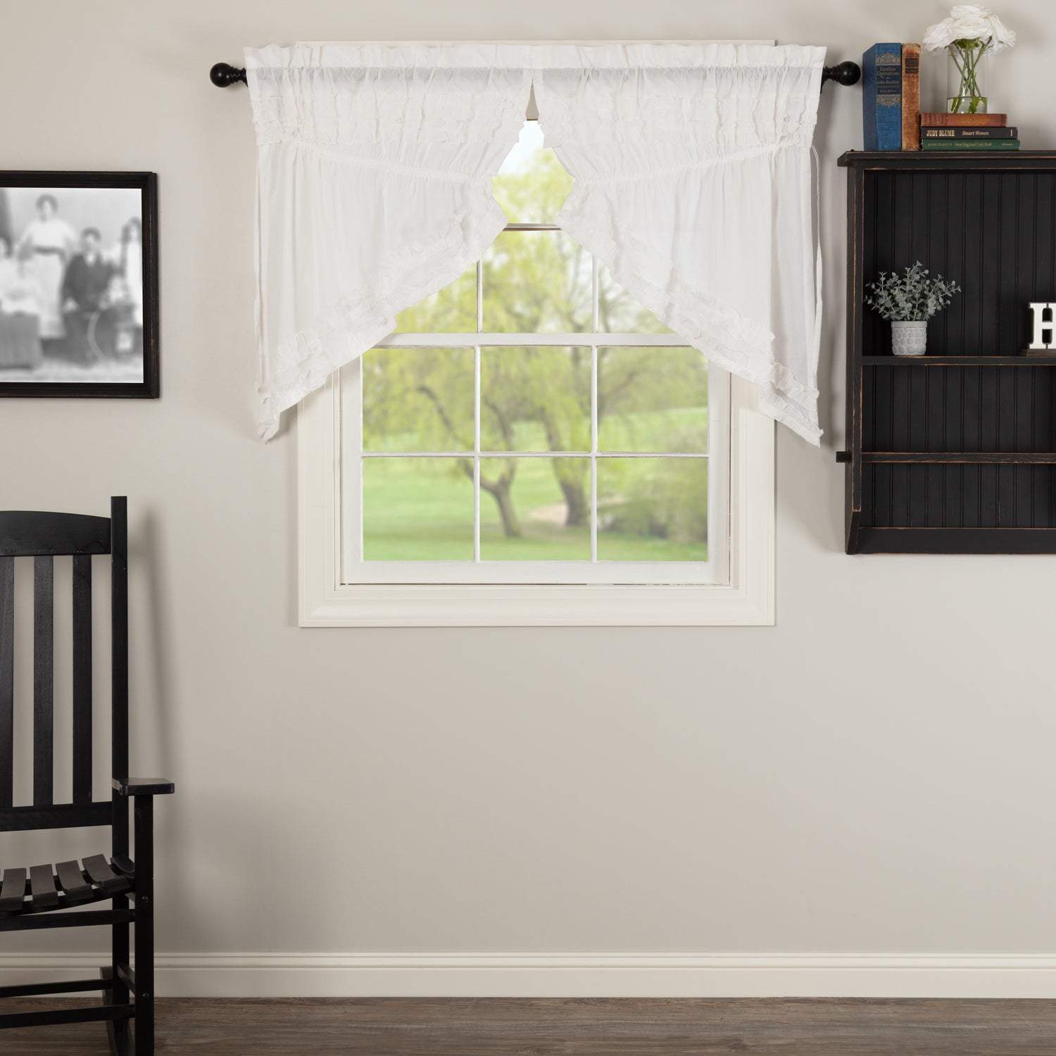 White Ruffled Sheer Petticoat Prairie Swag Set of 2 36x36x18