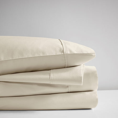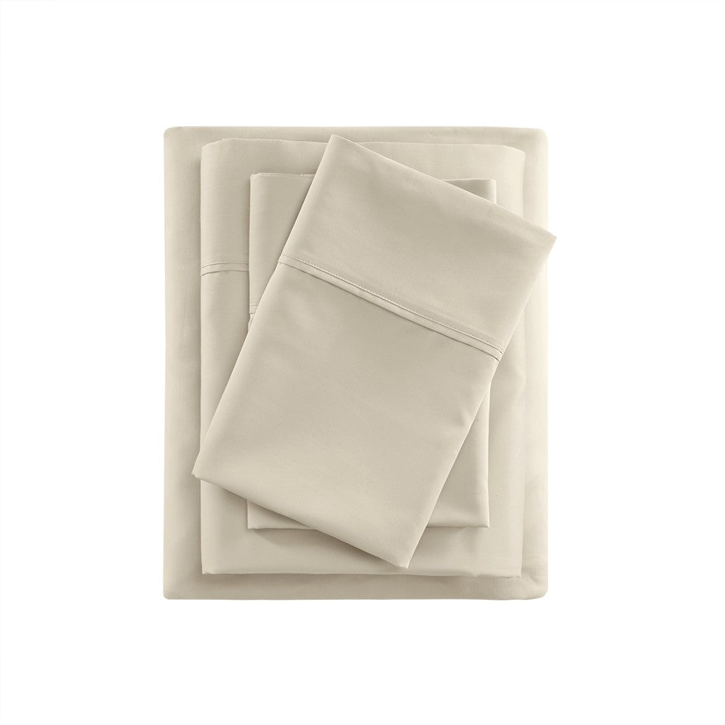 400 Thread Count Wrinkle Resistant Cotton Sateen Sheet Set - Ivory - Cal King Size