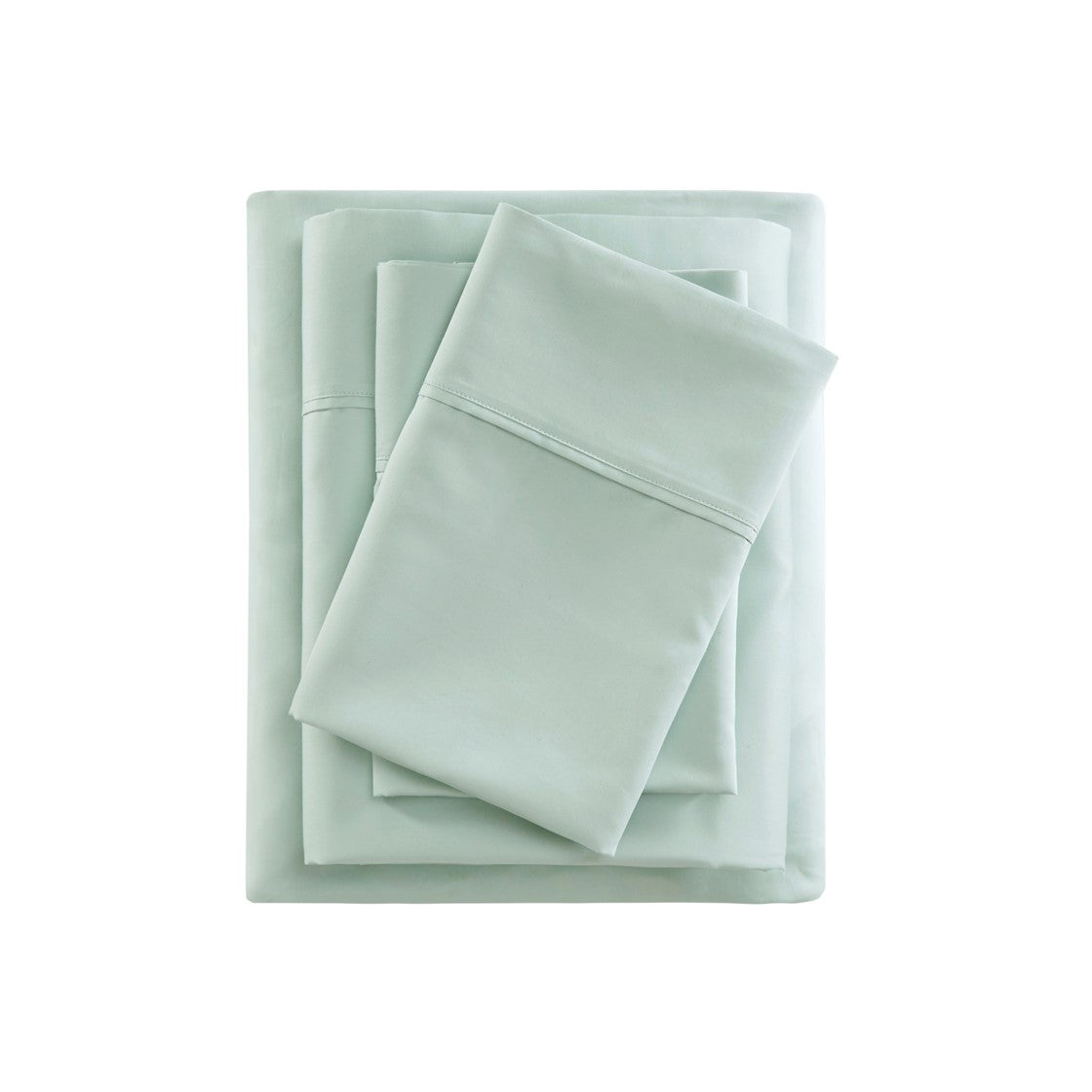400 Thread Count Wrinkle Resistant Cotton Sateen Sheet Set - Seafoam - Queen Size