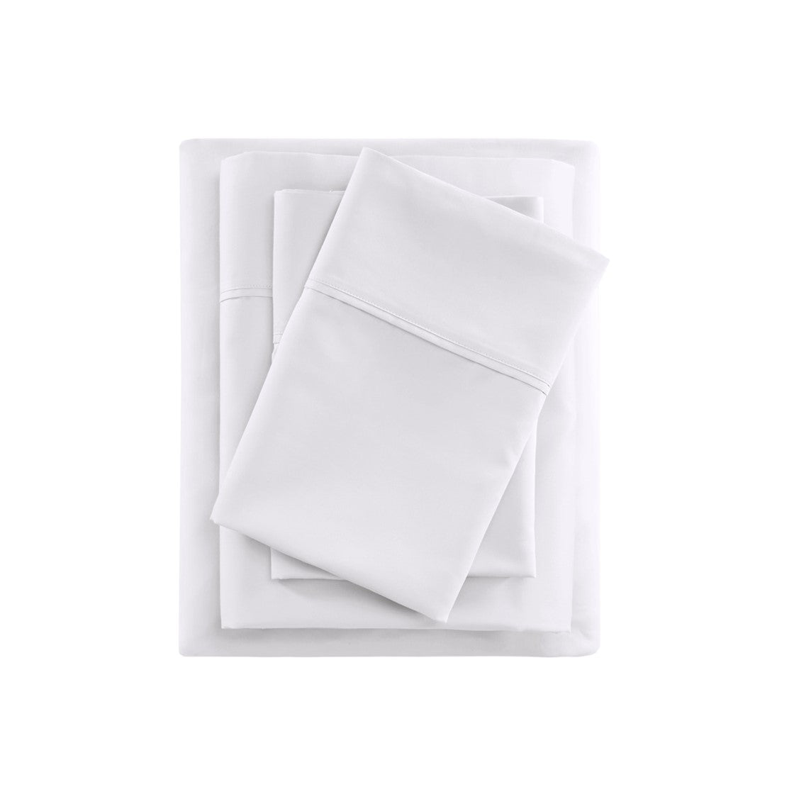 600 Thread Count Cooling Cotton Blend 4 PC Sheet Set - White - Queen Size