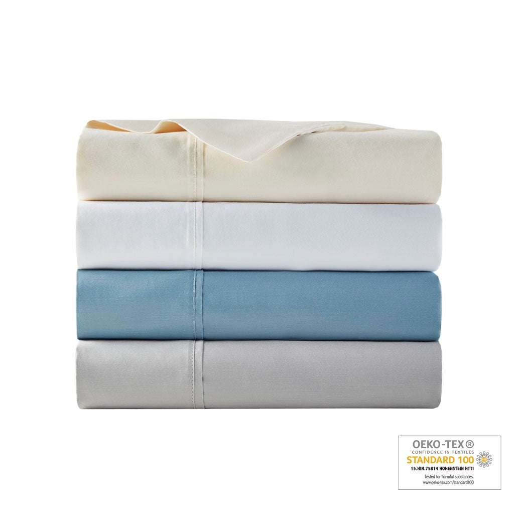The Beautyrest 700 Thread Count Tri-Blend antimicrobial 4 piece sheet set provides a clean and comfortable update to your bed. This sheet set is made with a triple blend weave of cotton, lyocell, and polyester for a soft look and feel. Also treated with an anti-microbial treatment for health and wellness - kills and prevents bacteria buildup, helps reduce odors, and enhances hygiene. These sheets are also OEKO-TEX certified, meaning it does not contain any harmful substances or chemicals, ensuring quality comfort and wellness. The sheets go through a very light brushing process that gives them an incredible peach-like feel against your skin. If you've wanted to try sateen sheets in the past, but have been put off by their crisp hand then this sheet is definitely for you. Made from sateen weave, our triblend sheets are smooth and rustles when you roll into the bed. Super easy to wash. It ages well and becomes rumpled and relaxed after every wash, while ensuring a deep sleep each night. Keep your bed safe and healthy to enjoy a peaceful night's sleep with this antimicrobial sheet set.