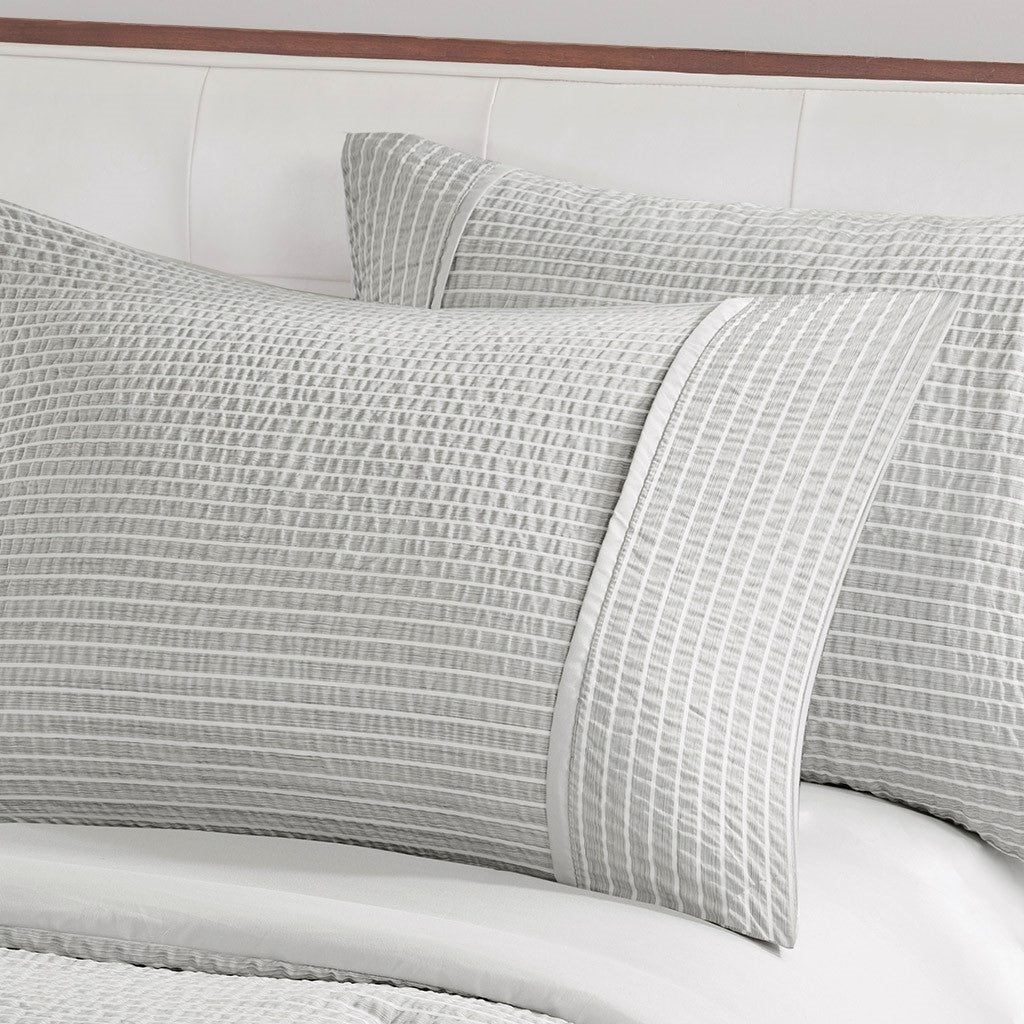 Apollo 3 Piece Striped Seersucker Oversized Comforter Set - Gray - Full Size / Queen Size