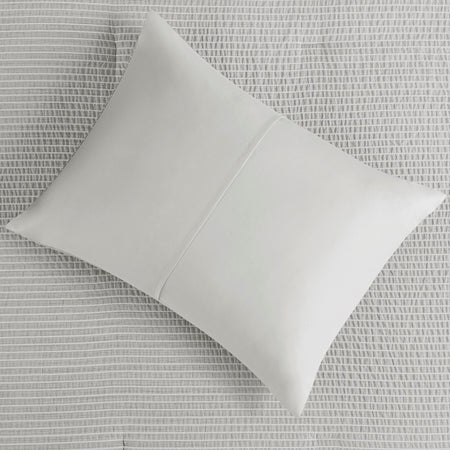 When you add Beautyrest’s Apollo striped comforter set to your bed, you will create a relaxing vibe in your bedroom. The oversized comforter features ivory stripes on soft gray seersucker fabric that pair well with both solids and patterns. A soft microfiber reverse adds extra comfort and matching shams complete the casual cozy look, transforming your bedroom into a space of pure comfort and relaxation.