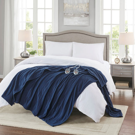 Electric Micro Fleece Heated Blanket - Navy - Twin Size