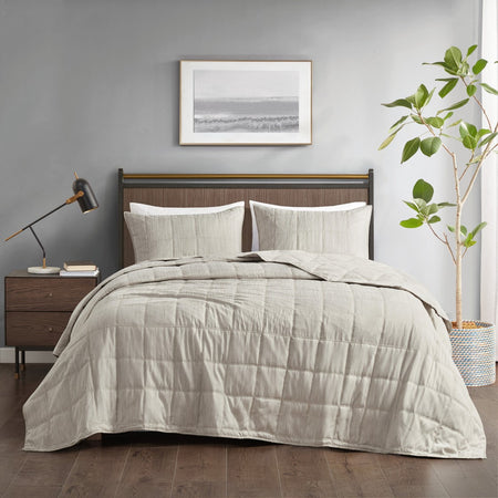 Guthrie 3 Piece Striated Cationic Dyed Oversized Quilt Set - Natural - King/Cal King