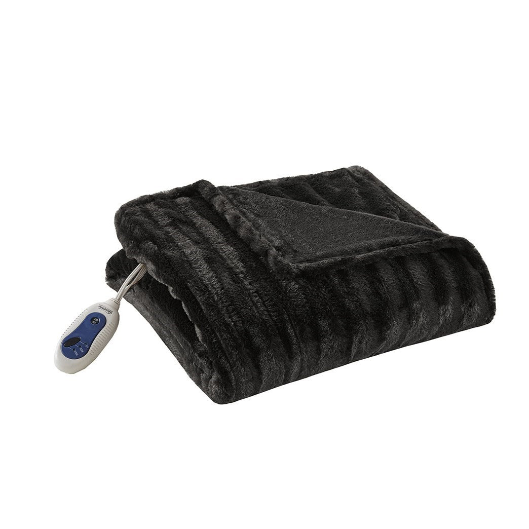 Heated Duke Faux Fur Heated Throw - Black - 50x70"
