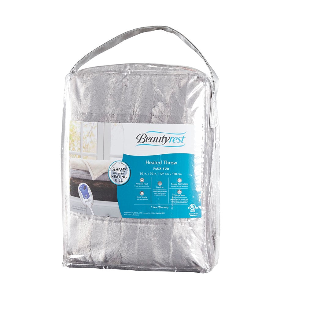Heated Duke Faux Fur Heated Throw - Grey - 50x70"