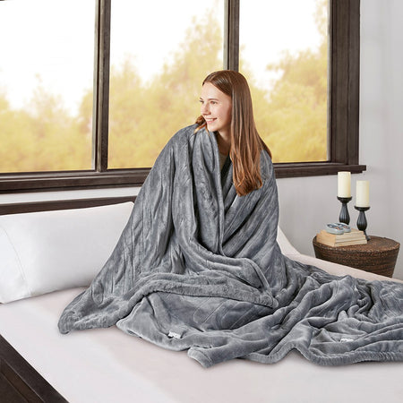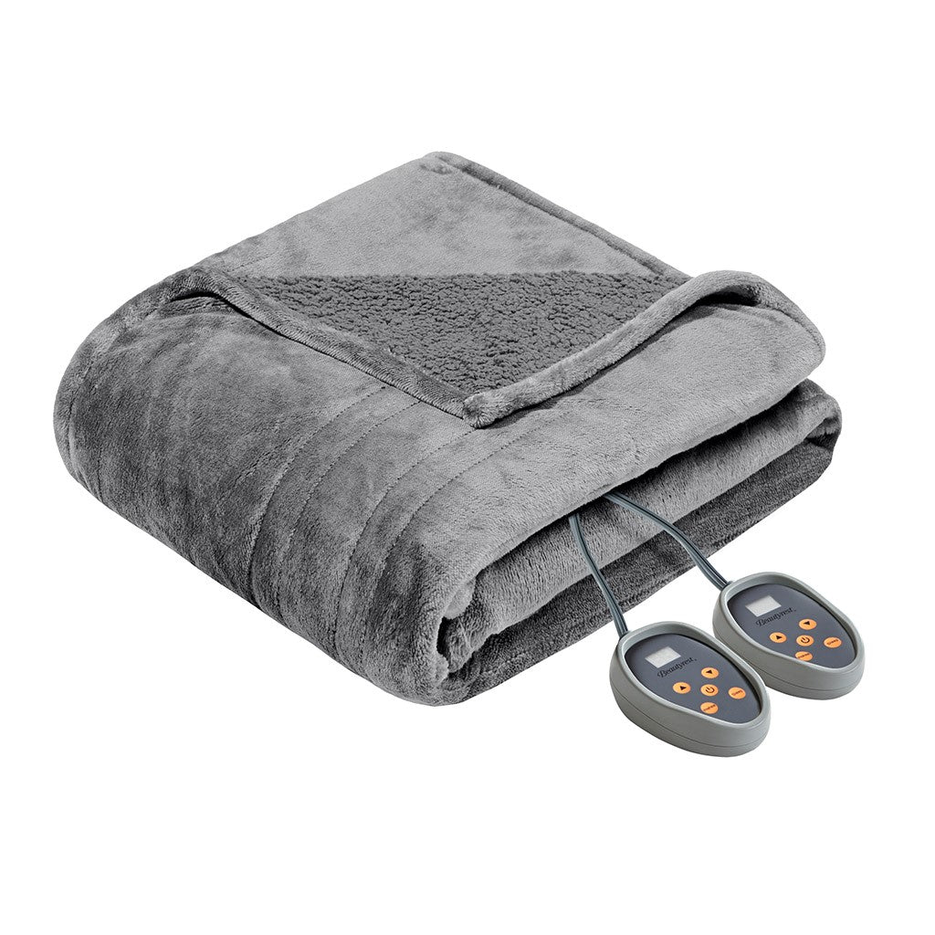 Heated Microlight to Berber Blanket - Grey - Queen Size