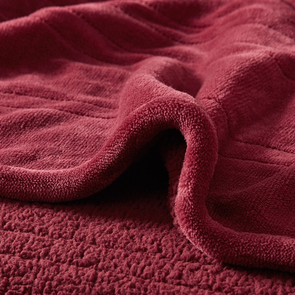 Heated Microlight to Berber Blanket - Red - Twin Size