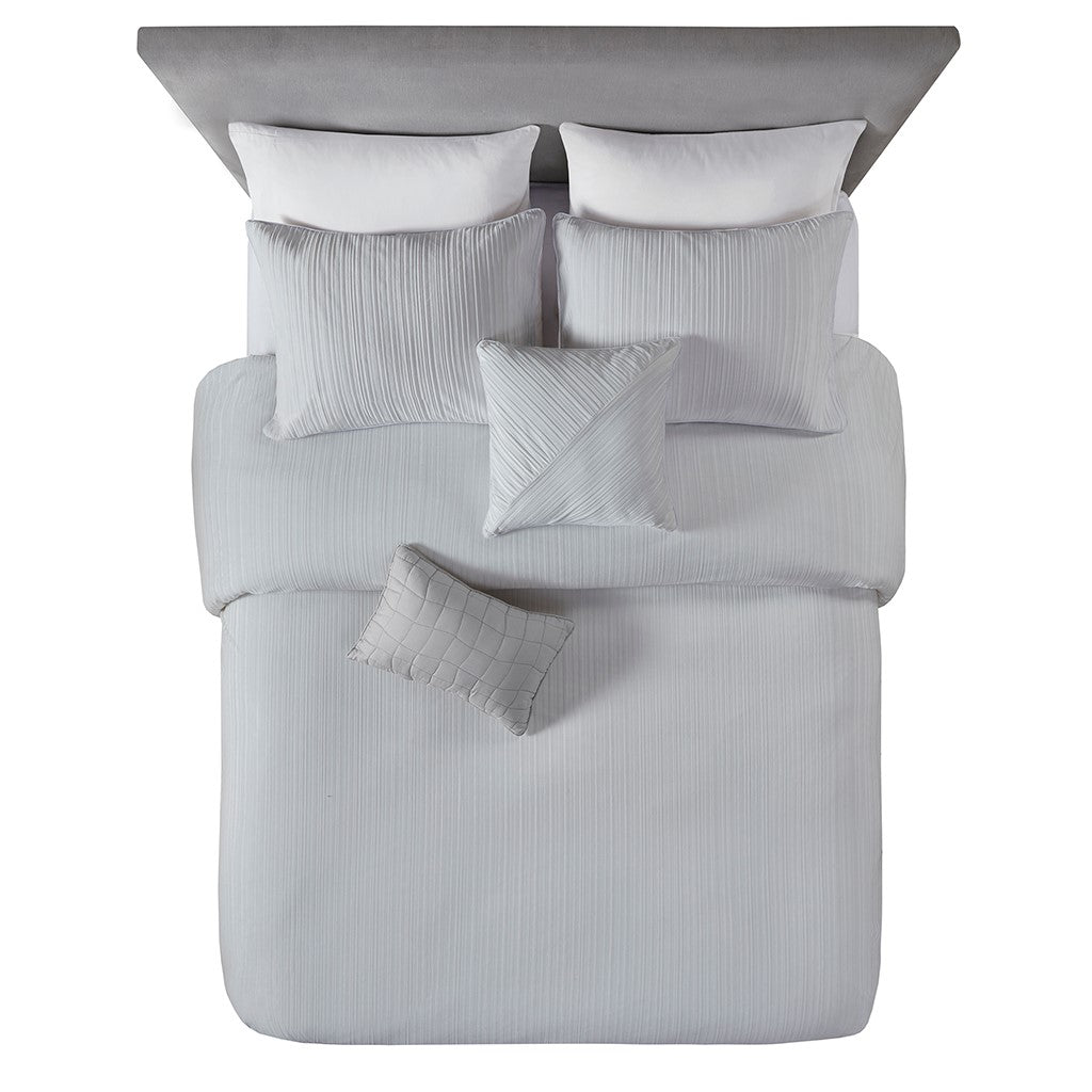 Jasper 5 Piece Crinkle Velvet Comforter Set - Grey - Full Size / Queen Size