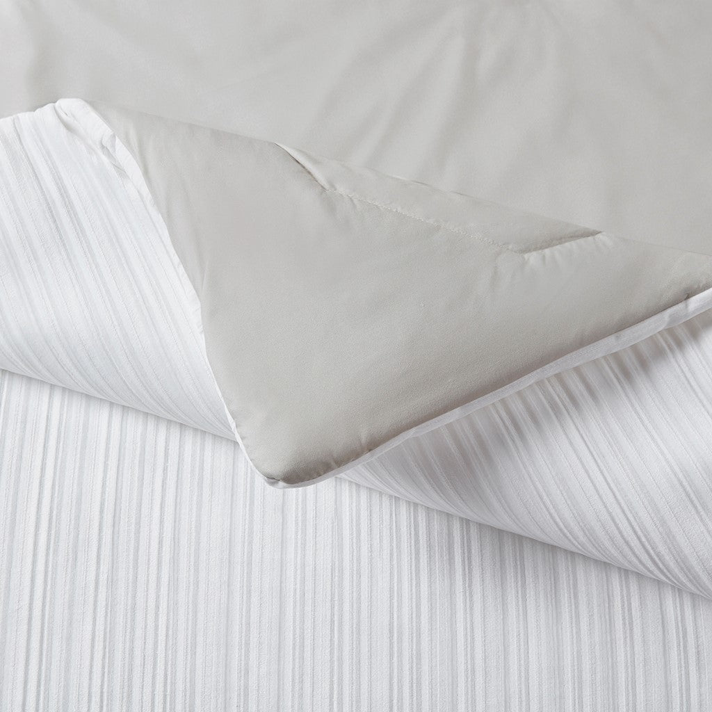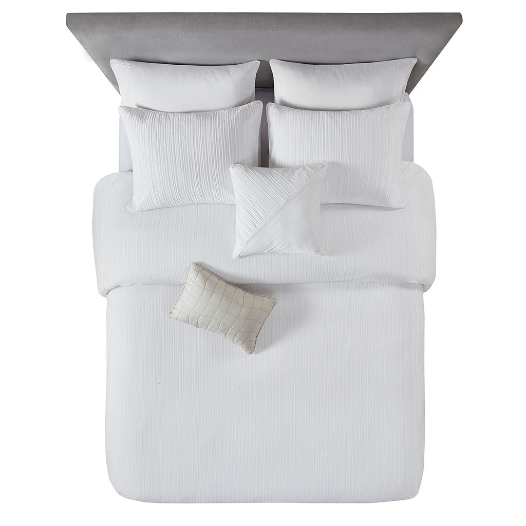 Jasper 5 Piece Crinkle Velvet Comforter Set - Ivory - Full Size / Queen Size