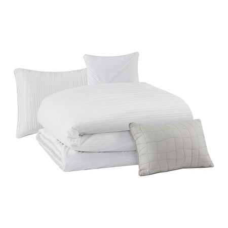 Jasper 5 Piece Crinkle Velvet Comforter Set - Ivory - King Size / Cal King Size