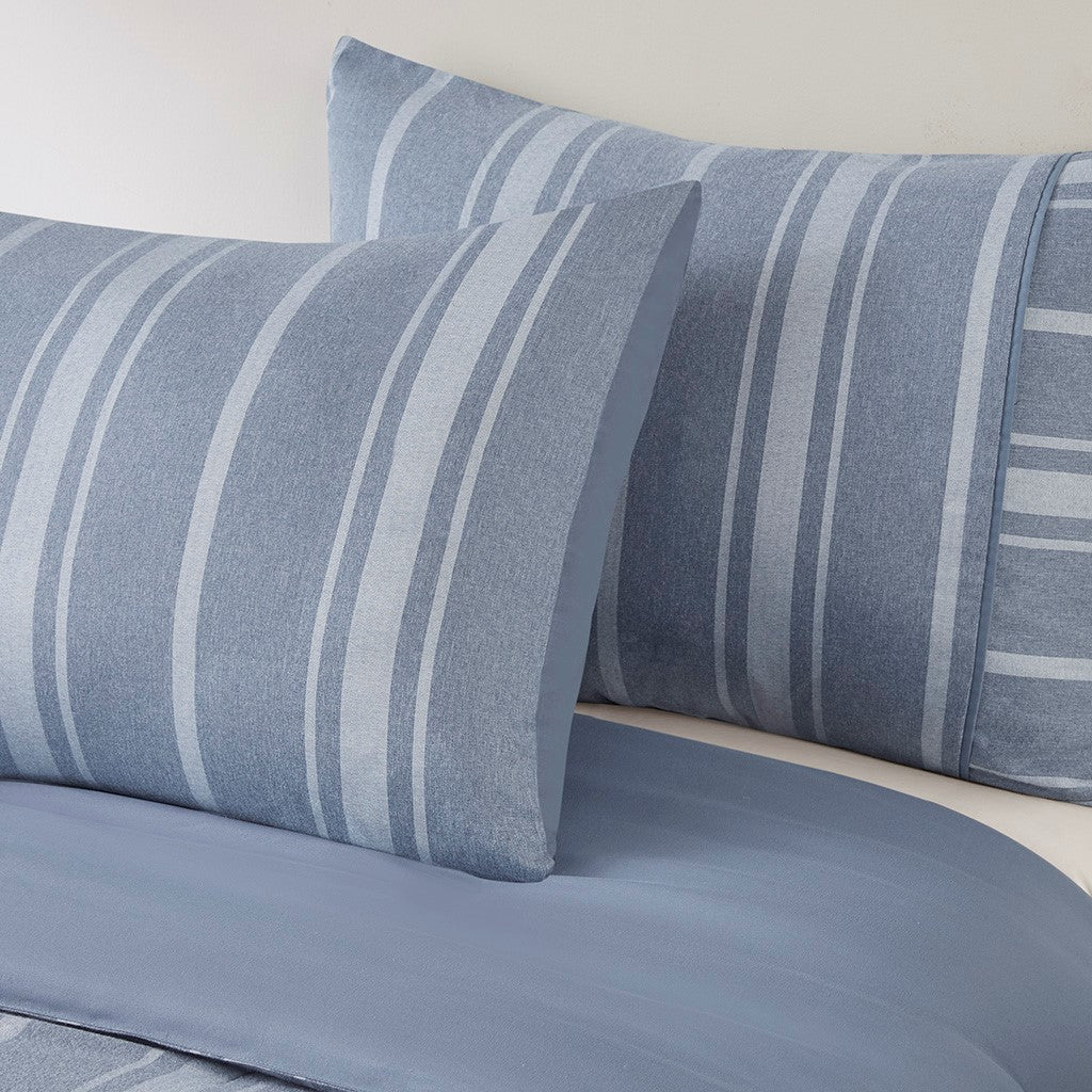 Kent Striped Herringbone Oversized Duvet Cover Set - Blue - Full/Queen