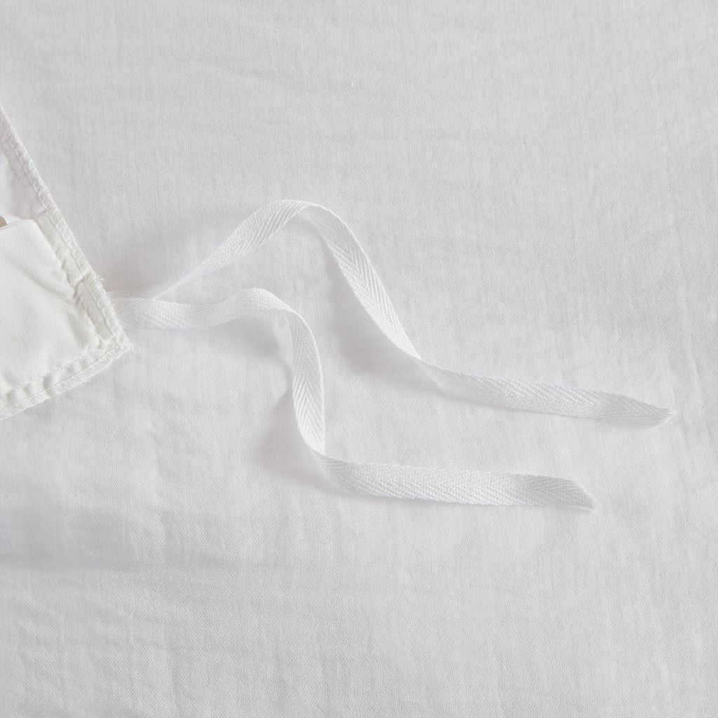 - Inner corner ties to secure the insert, button closure