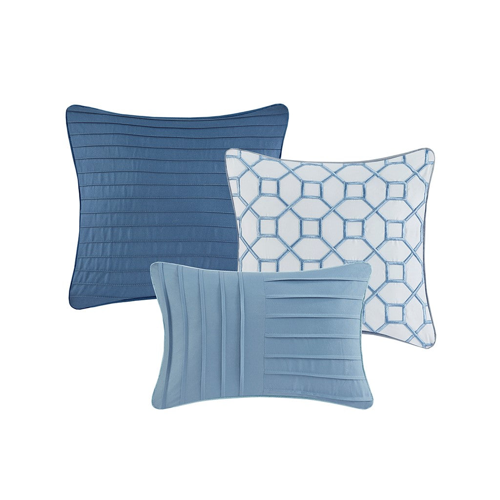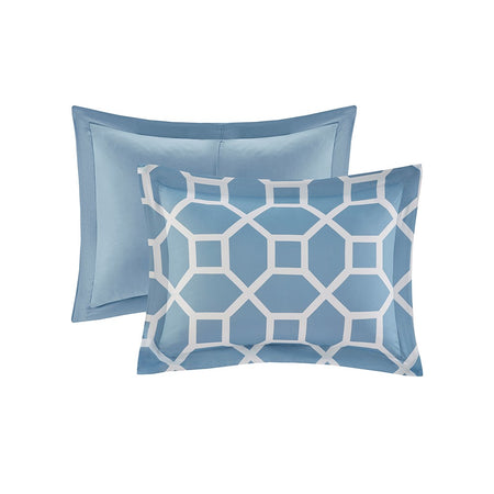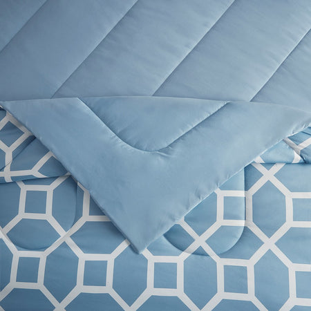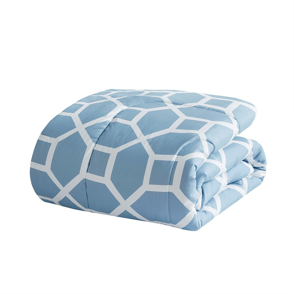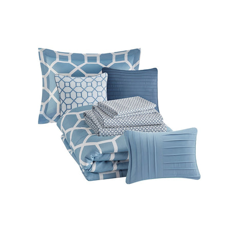 Nora 10 Piece Geometric Comforter Set with Bed Sheets - Blue - King Size
