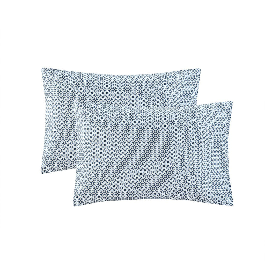 The Beautyrest Nora 10 Piece Geometric Comforter Set with Bed Sheets offers a bold and modern update to your bedroom. The comforter features a blue and white geometric pattern, while matching shams and 3 decorative pillows complete the comforter set. A coordinating printed microfiber sheet set is also included, complete with 1 flat sheet, 1 fitted sheet, and 2 pillowcases. Machine washable for easy care, the comforter and sheet set have a moisture-wicking treatment on the fabric to help keep you cool and comfortable for a better night's sleep.
