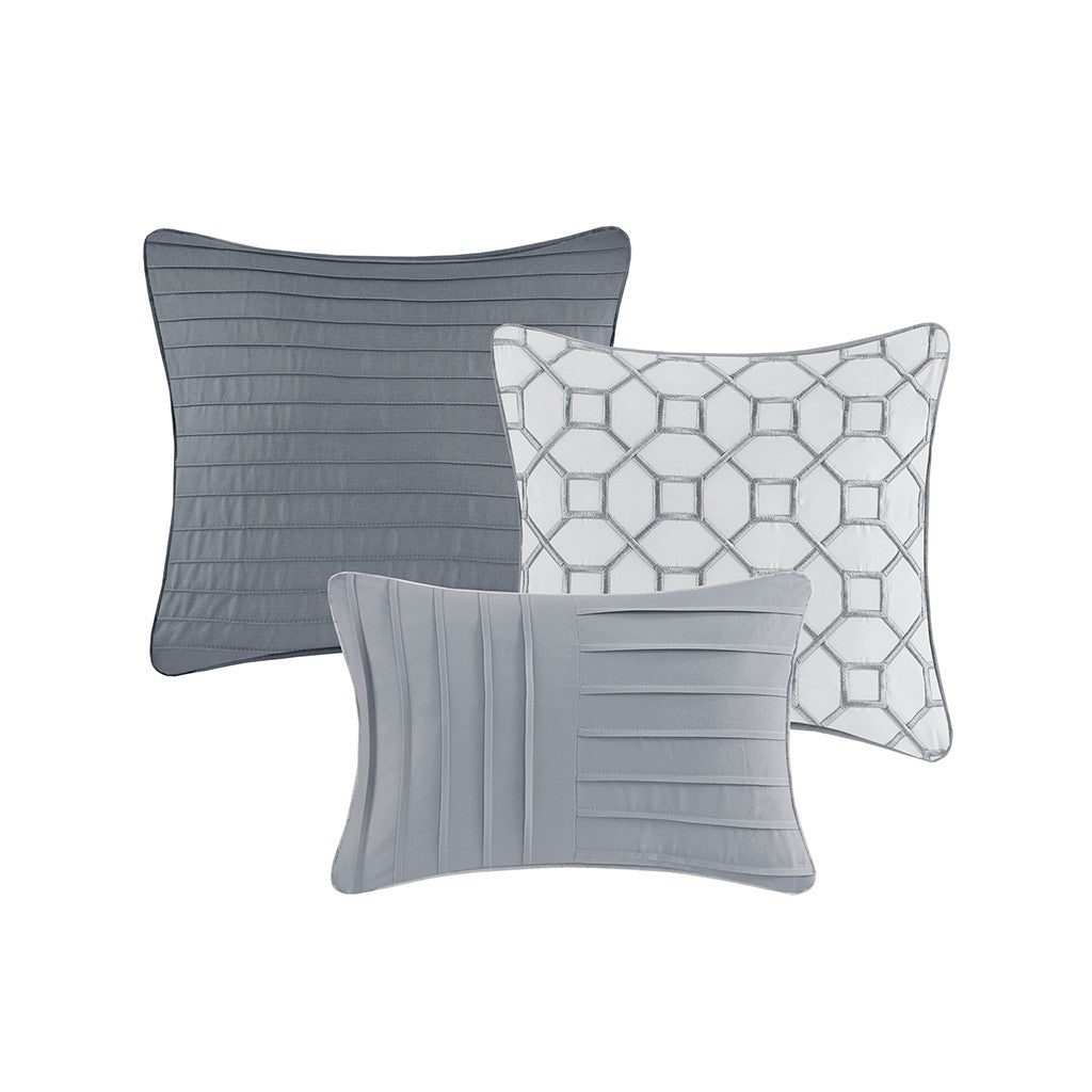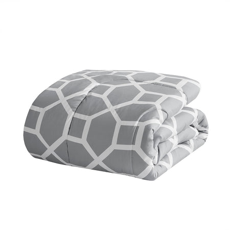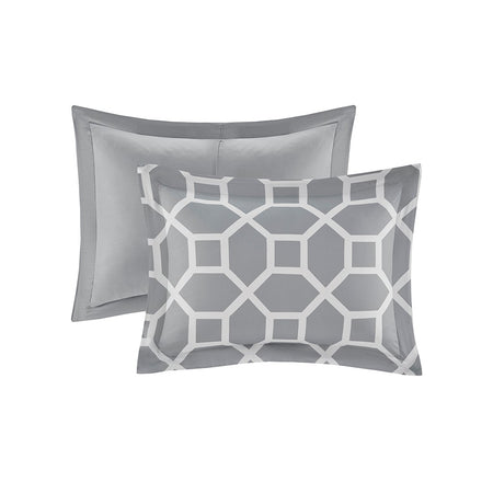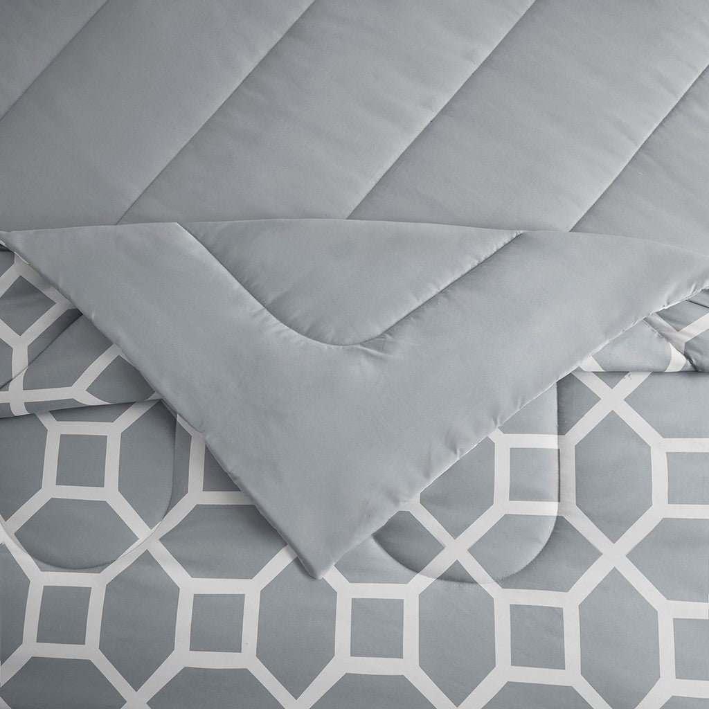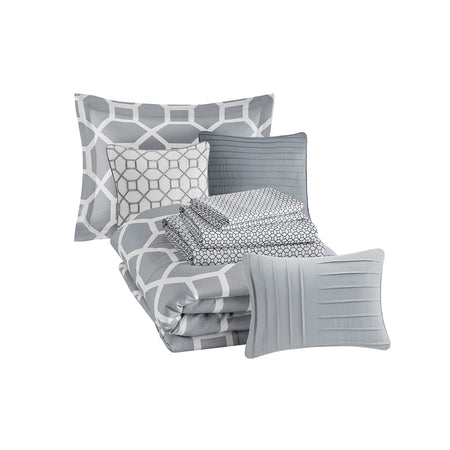 Nora 10 Piece Geometric Comforter Set with Bed Sheets - Grey - Queen Size