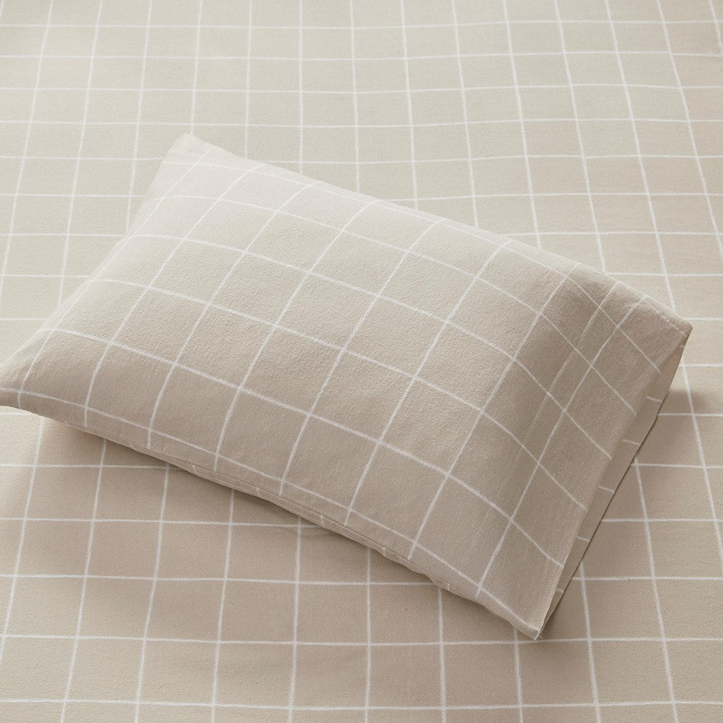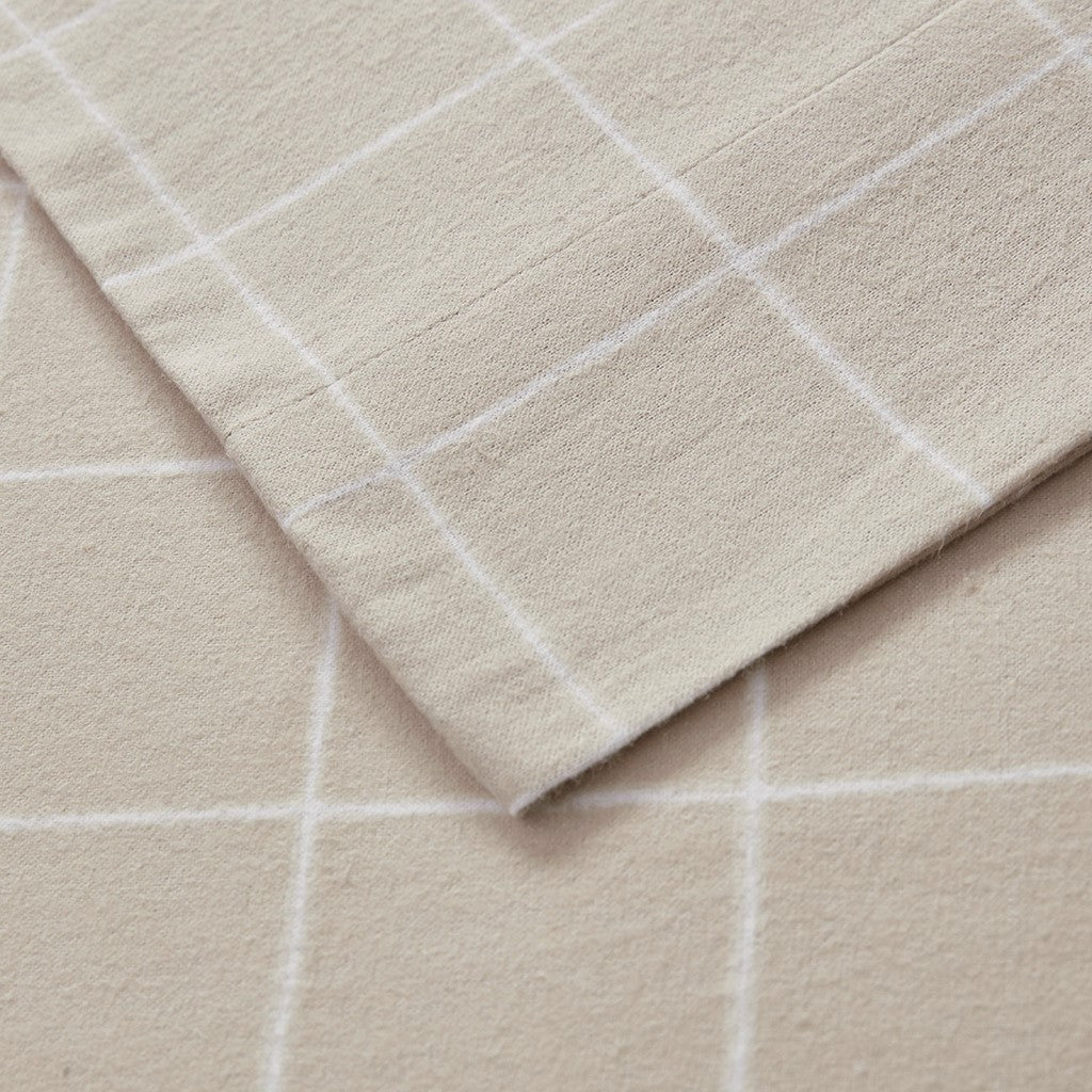 Oversized Cotton Flannel 4 Piece Sheet Set - Beige Windowpane - King Size