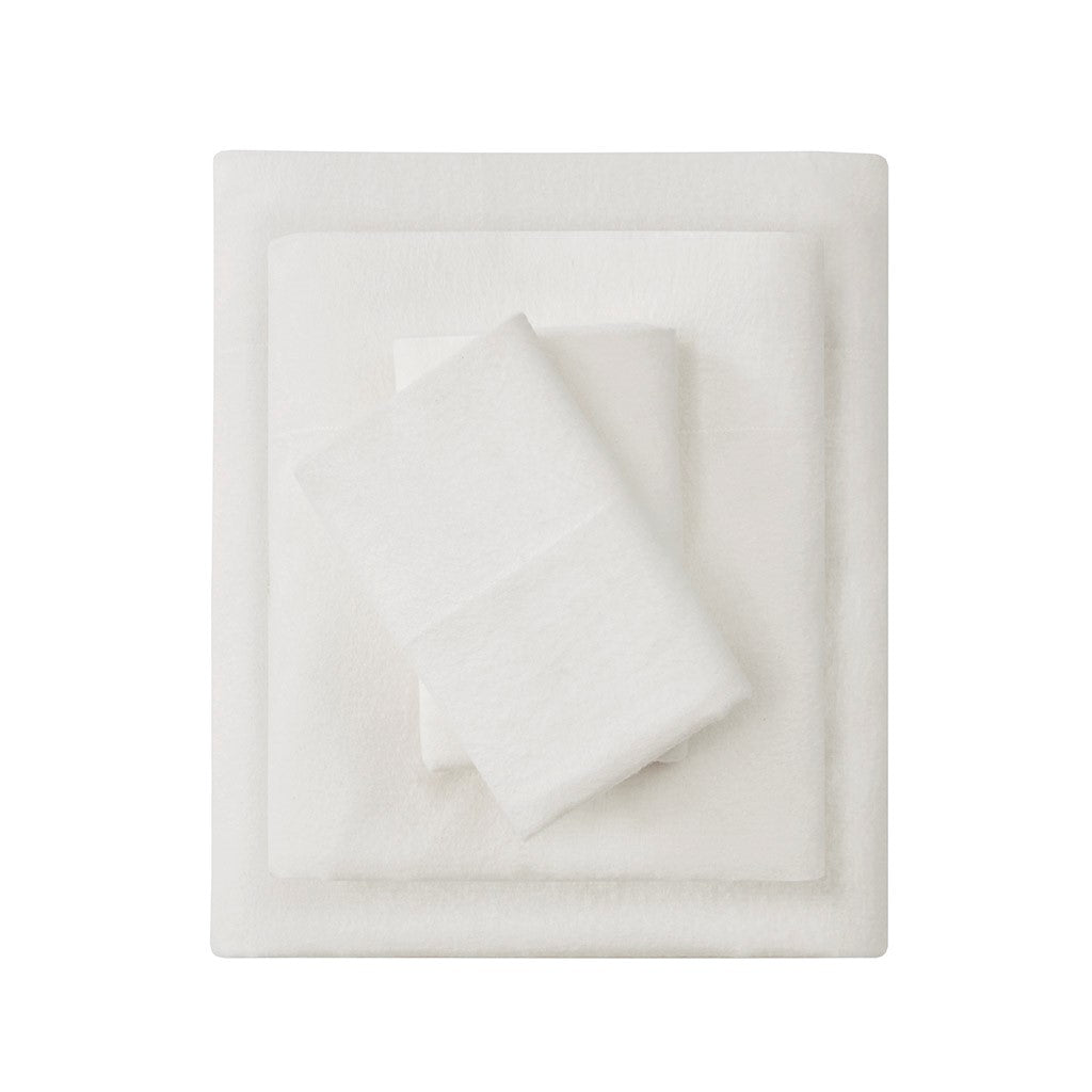 Oversized Cotton Flannel 4 Piece Sheet Set - Ivory Solid - Full Size