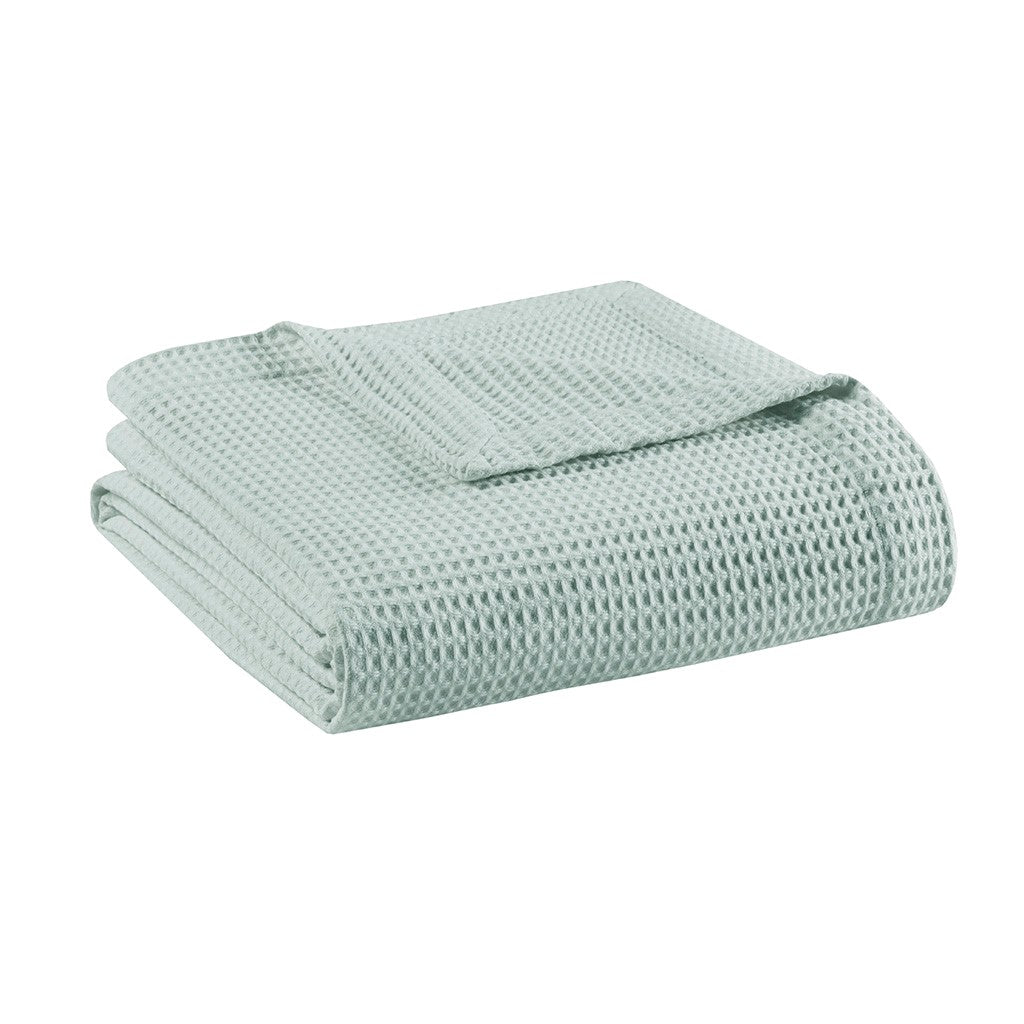 Waffle Weave Cotton Blanket - Aqua - Full Size / Queen Size