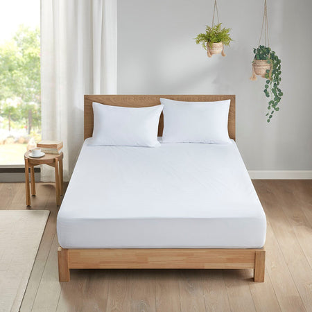 Keep your bed fresh and clean with the Clean Spaces Allergen Barrier Mattress and Pillow Protector Set. The mattress and pillow protectors are laminated and waterproof with an allergen barrier that provides a protective layer from microbes. This set is finished with an Ultra Fresh anti-microbial treatment that provides odor control, inhibiting bacteria buildup, and keeping linen fresher, longer. Active for multiple washes, this treatment implements a superior long-lasting durable performance. This protective bedding set is also OEKO-TEX certified, meaning it does not contain any harmful substances or chemicals to ensure quality comfort and wellness. The pillow protector features a zipper closure and mattress protector fits mattresses up to 18-inches in depth.