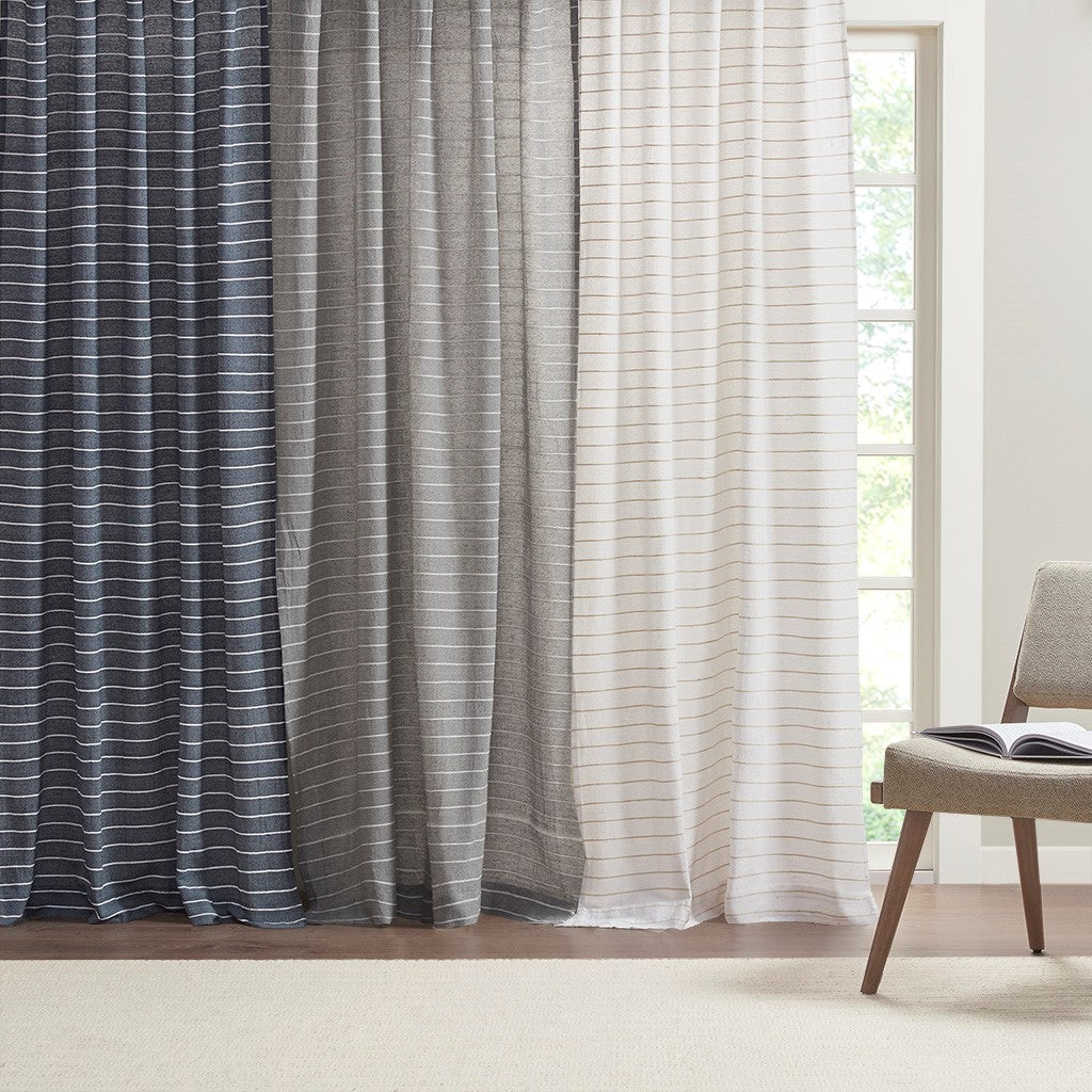 Inspired by the color-blocking trend, this curtain panel is tailored with a two color layering of white and grey to create a modern look in a simple way. The linen-like fabrication is semi-sheer and lightweight and it provides an advanced light transmission during the day time. The grommet top creates a beautiful wave and makes the panel easy to hang, open, and close for daily use.