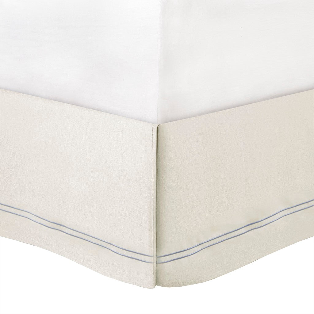 Bedskirt: cotton blend fabric for the platform,  100% cotton percale solid fabric for the skirt with stitching