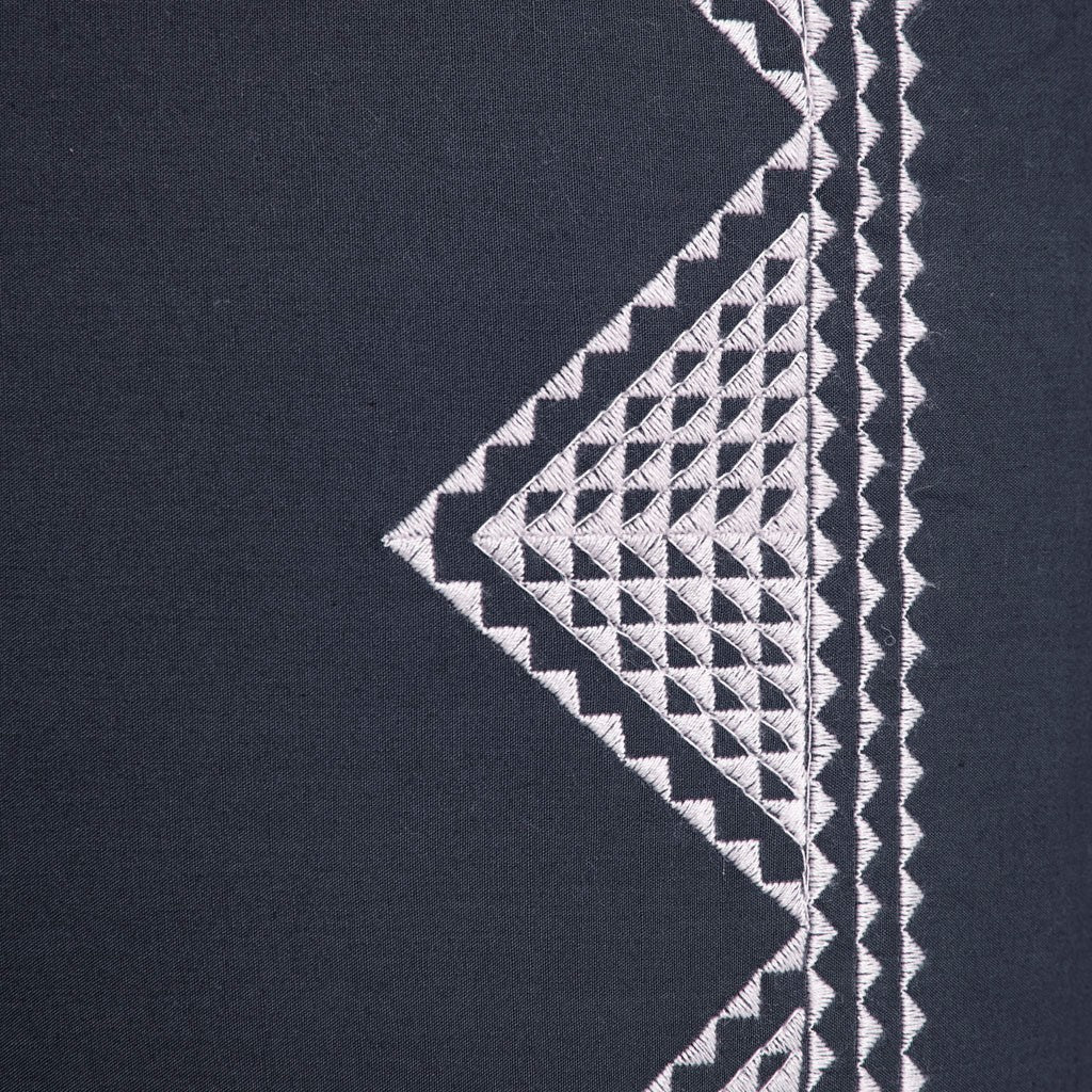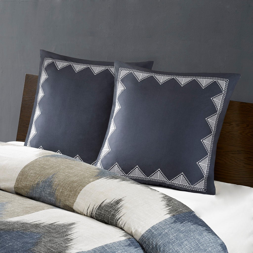 Add a touch of drama to your bedding with the INK+IVY Isla Euro Sham. This 26x26" sham features a geometric design embroidered along the edge of a navy ground. This sham features a topical antimicrobial treatment that prevents bacteria buildup to keep the fabric fresher, longer. This euro pillow cover can be easily mixed and matched with your home decor to create that perfect look. Inlcudes one euro pillow cover, Filler pillow is NOT included.