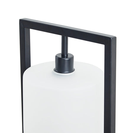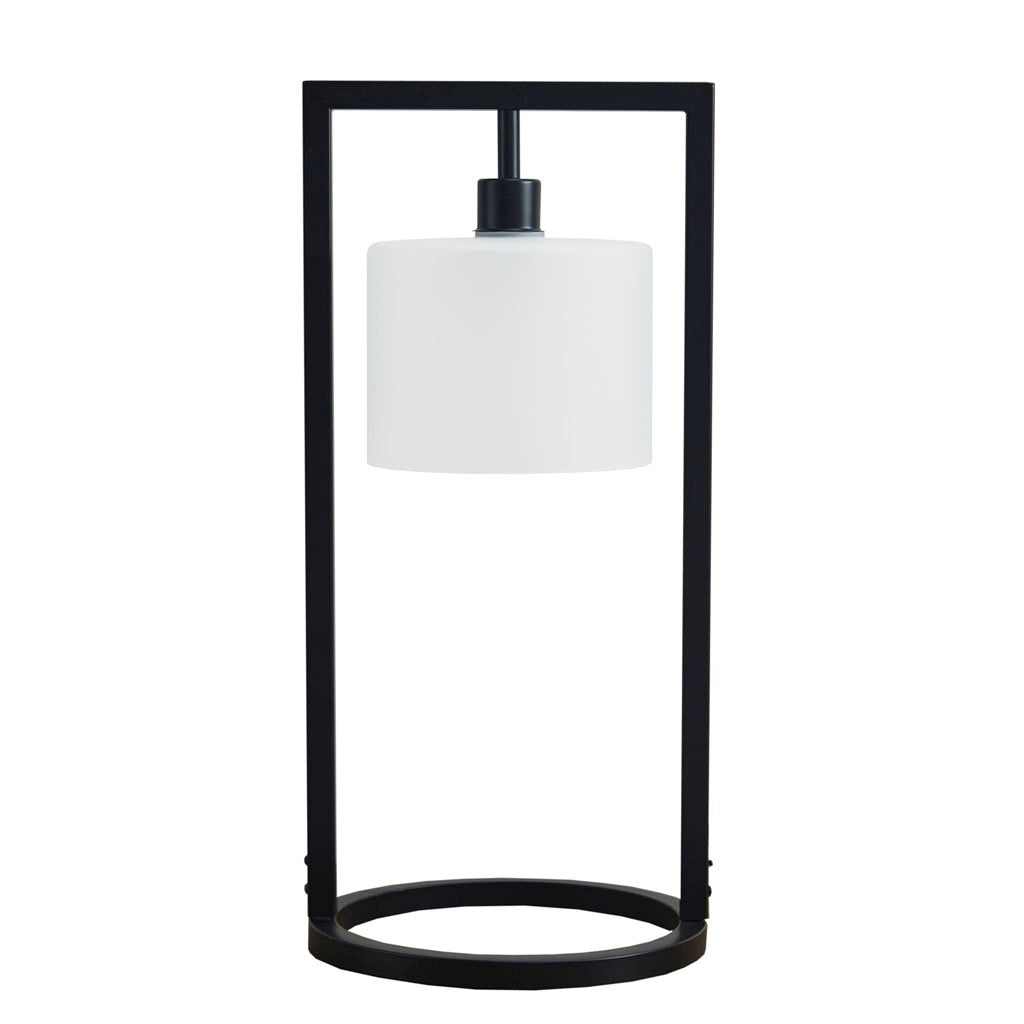 Kittery Metal Table Lamp with Glass Drum Shade - Black Base / Frosted Shade