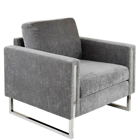 Give your space a lavish update with the INK+IVY Madden Accent Chair. Featuring high track arms and thick removable cushions, this accent chair is upholstered in a soft grey fabric that creates a luxurious seating experience. The chrome plated frame and legs provide exceptional support, while also adding a touch of elegance. Strikingly beautiful, this accent chair is sure to make a statement in any room of your home. Leg assembly required.
