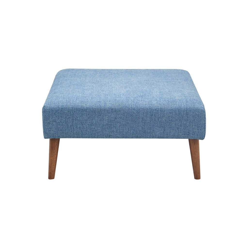 Refresh your living space with the simple and versatile design of the INK+IVY Maise Ottoman. This square ottoman is upholstered in a rich blue fabric with solid wood legs in a walnut finish to create an inviting transitional look. The smooth, plain top provides a stable surface, ensuring that objects placed on it will not wobble or fall. Incorporate this upholstered ottoman into your living room to give your decor a sophisticated mid-century focal point. Leg assembly is required.