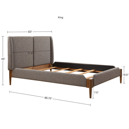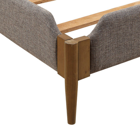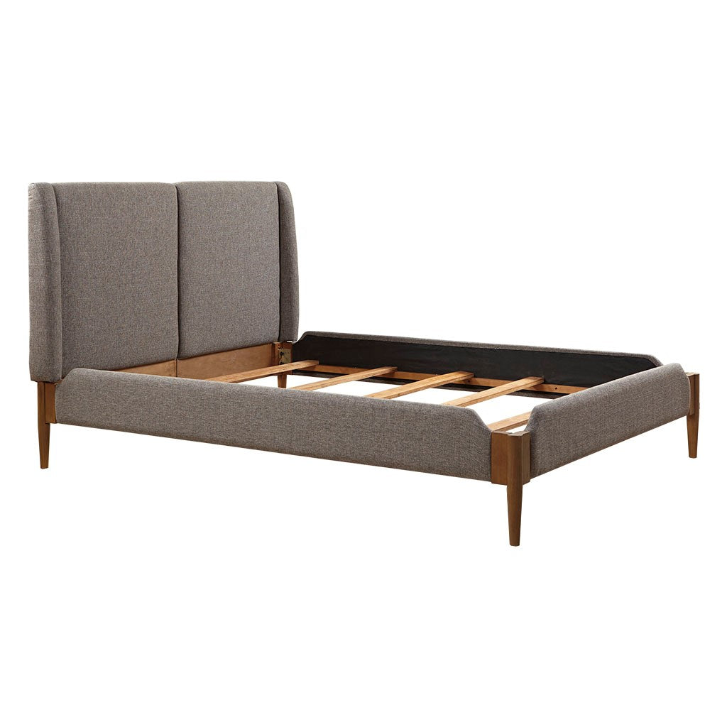 Update your bedroom with the sophisticated style of the INK+IVY Mallory Queen Bed. This queen size bed frame features an upholstered headboard and side rails, in a multi-tonal brown fabric, to create a handsome look. The solid wood legs flaunt a rich and natural wood finish that complements the upholstery. Assembly required, tools included.