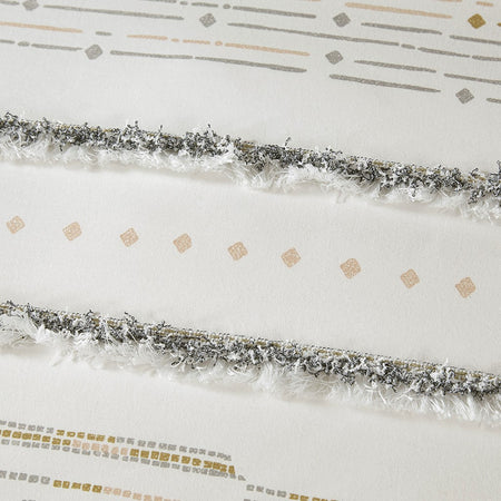 The INK+IVY Nea Cotton Printed Comforter Set with Trims offers a handsome update to your bedroom decor. A printed stripe pattern and rows of tassels, in multiple hues, create a shabby chic look on the 100% cotton comforter and shams. Hidden bar tacking in the filling covered with a non-woven fabric provides a clean duvet-like finish. The matching shams feature a one-inch flange and an overlap closure on the back to easily insert your pillows. Made from 100% cotton, this cotton printed comforter set is machine washable for easy care and brings a modern touch with boho flair to your bedroom. This comforter also features an anti-microbial treatment which is odor neutralizing and lasts through muliple washes. Items in the set may come in a rolled or compressed packaging, which will need to be fluffed up or steam ironed before use to remove wrinkles.