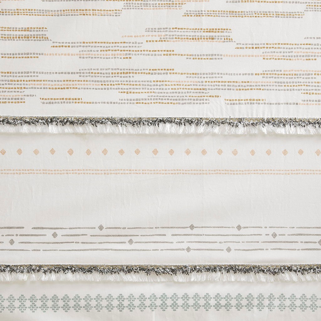 Nea Cotton Printed Window Panel with tassel trim and Lining - Off White / Gray - 84" Panel