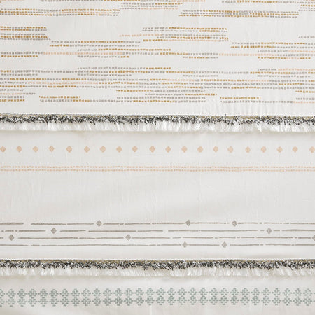 Elevate your home decor with the modern boho style of our INK+IVY Nea Cotton Printed Tassel Trim and Lined Window Curtain. This off white/gray cotton window panel features fresh printed stripes and tassel detailing creating a rich artisanal texture, for a shabby chic look and feel. A lightweight white cotton lining on the reverse softly filters light, while providing better drapability and added privacy. Each panel is finished with a rod pocket top for easy hanging, and back tabs for a more clean and tailored finish. This window panel is sold as a single and 2 window panels must be purchased to cover any standard size window. Complete the look with coordinating bedding sets and bath decor, available and sold separately.