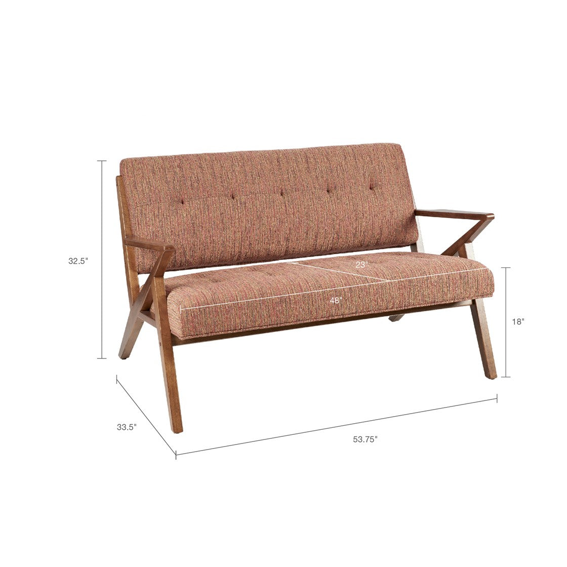 The Rocket loveseat is the perfect update of mid century modern. The refreshing pop of red hues add a retro touch as the pecan wood finish creates a natural tone. Inspired by the iconic 60's silhouettes with a modern twist of bronze finishes and unique shapes for an updated look. Assembly required.
