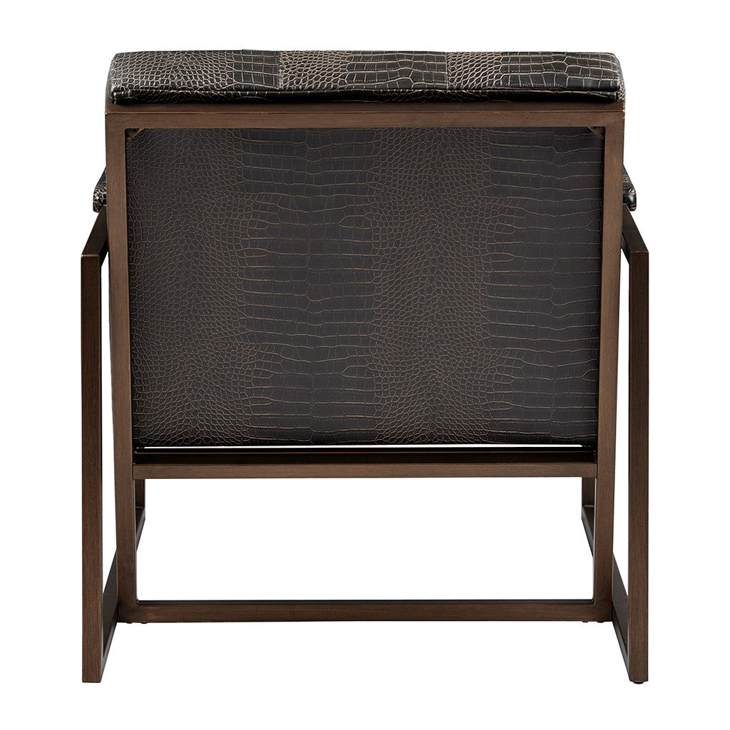 Envelop yourself in the luxurious comfort of INK+IVY's Waldorf Lounge Chair. This deep seated accent chair is upholstered in dark chocolate brown snakeskin patterned polyurethane, creating a strong and stately look. An antique bronze finish on the metal frame provides an alluring accent to the design. With its dapper style, this lounge chair adds a luxurious touch to your living room decor. Assembly is required.
