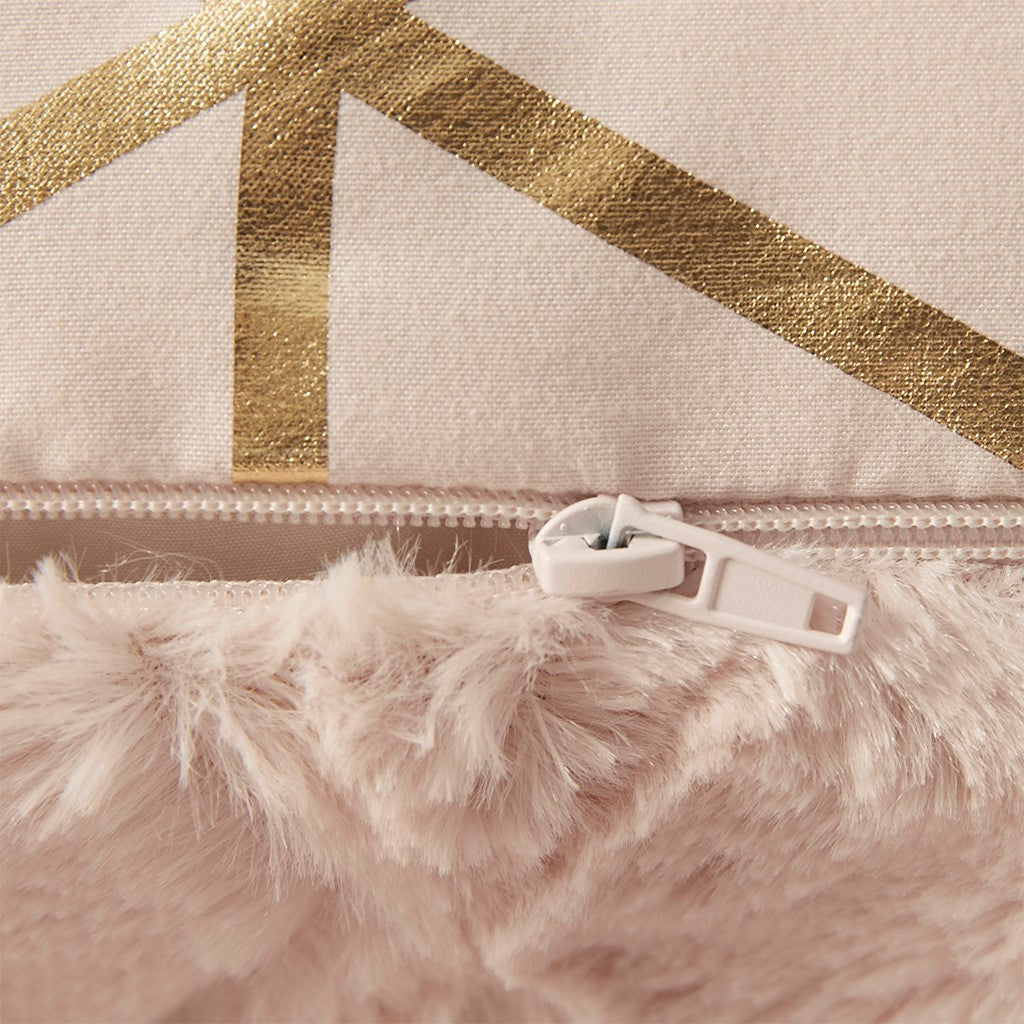 Sham: Metallic Print Microfiber to Solid Brushed Long Fur, Zipper on one Short Edge
