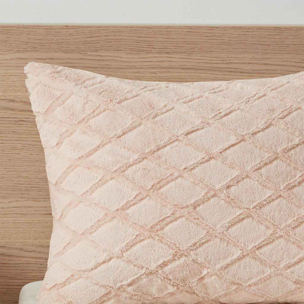 - Blush diamond patterned faux fur on reverse