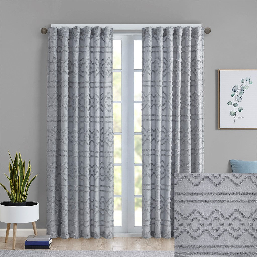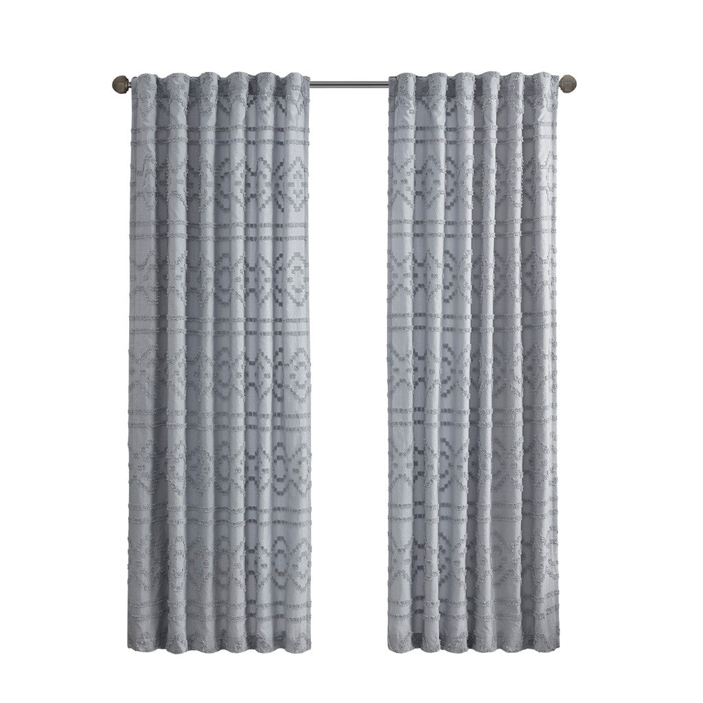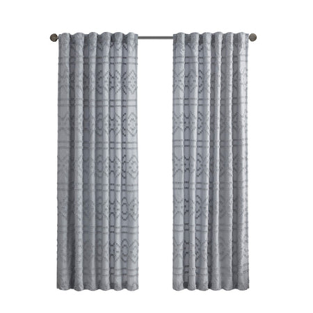 Our Intelligent Design Annie Solid Clipped Jacquard Window Panel offers a fun and shabby chic update to your home decor. This solid grey seersucker textured window panel features a clipped jacquard geo pattern, for a tonal design that's simply fresh and unique! A rod pocket top makes the window curtain easy to hang, or use back tabs for a clean and tailored finish - both top finishes fit up to 1.25" diameter rod. Lined for better drapability and extra privacy, this clipped jacquard window panel adds the right touch of texture and style to any room in your home. Achieving the Oeko-Tex certification means this window panel does not contain any harmful substances or chemicals, ensuring quality comfort and wellness. Purchase 2 window panels to fully decorate any standard size window. Coordinating bedding and shower curtain, available and sold separately.