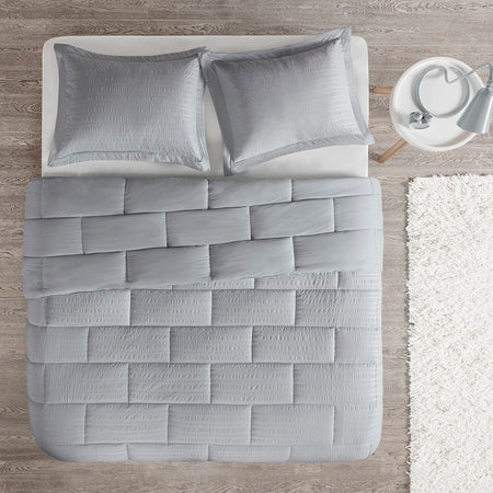 Avery Seersucker Down Alternative Comforter Mini Set - Grey - Full Size / Queen Size