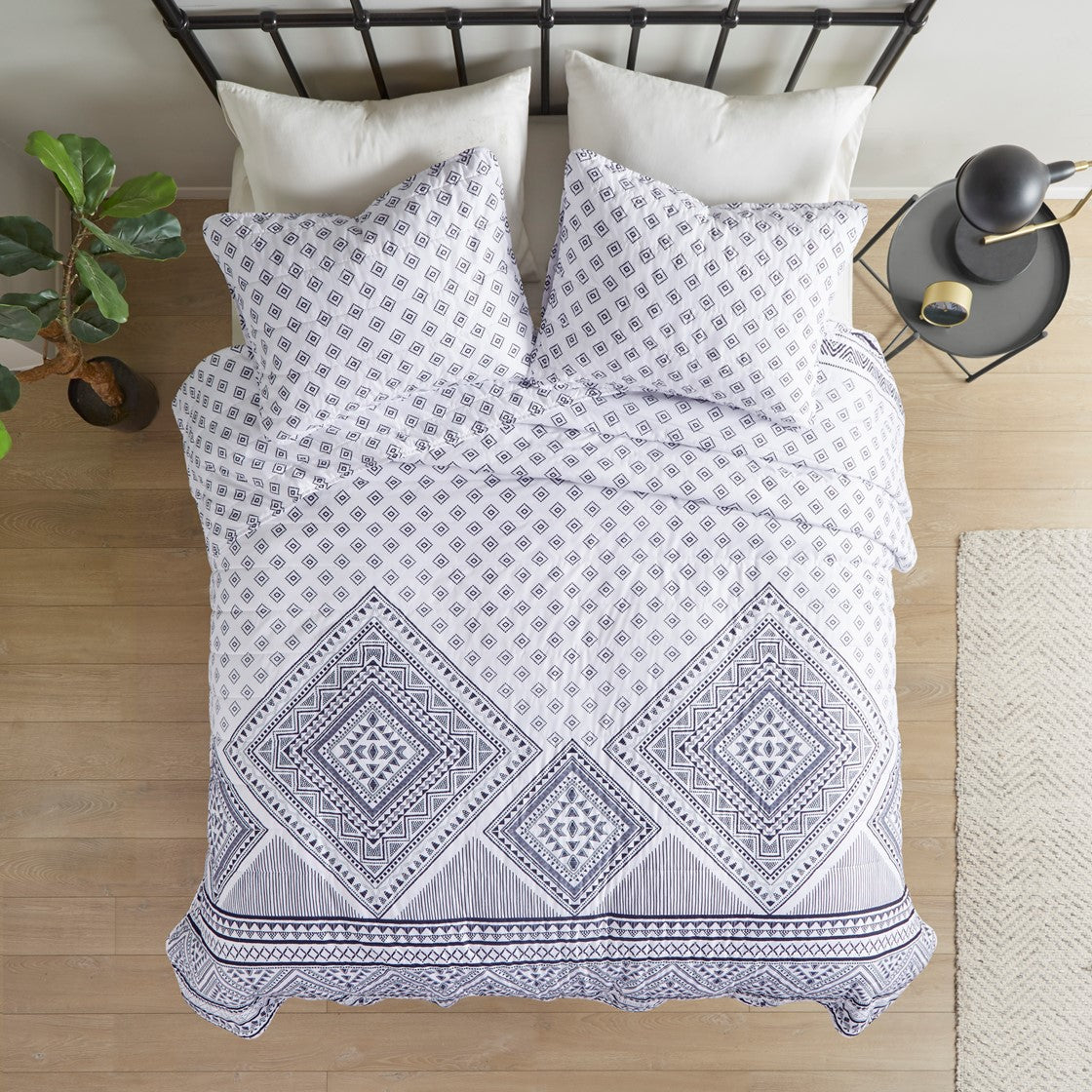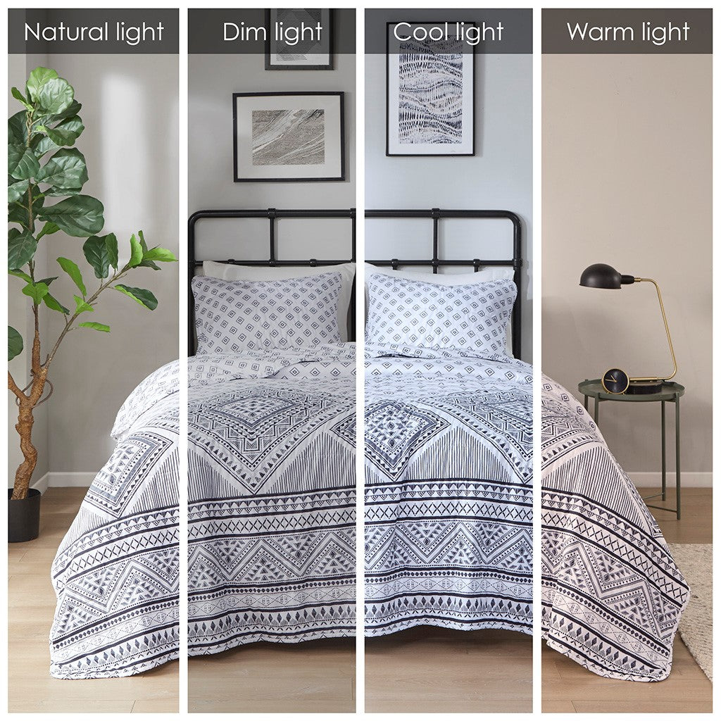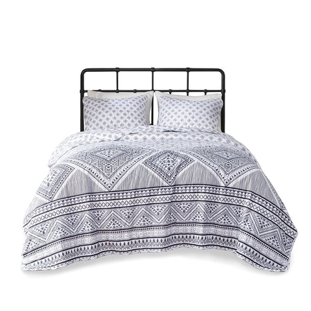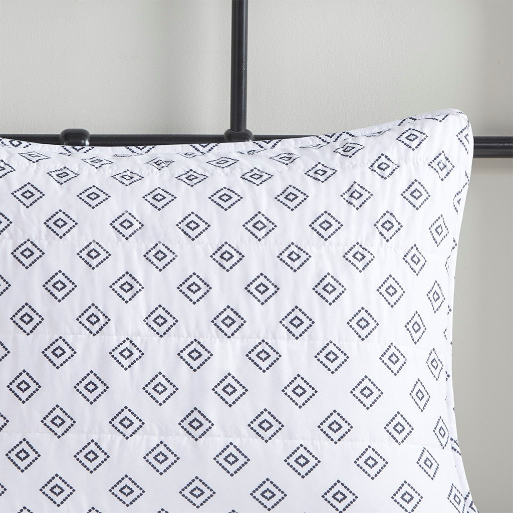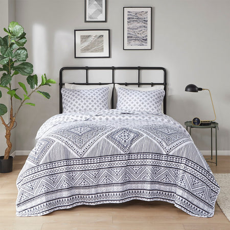 The Intelligent Design Camila Reversible Coverlet Set brings an eye-catching update to make your bedroom stand out. This reversible coverlet features a bold contrasting geometric design with a small diamond pattern on the reverse for two distinct contrasting looks. The matching shams (1 in Twin/TwinXL) repeat the globally inspired design of the coverlet to complete the modern bedding set. Pre-washed with cotton filling provides added comfort and softness, this reversible coverlet set is OEKO-TEX certified, meaning it does not contain any harmful substances or chemicals to ensure quality comfort and wellness. An antimicrobial treatment helps reduce the growth of odor causing bacteria and keeps fabric lasting longer.