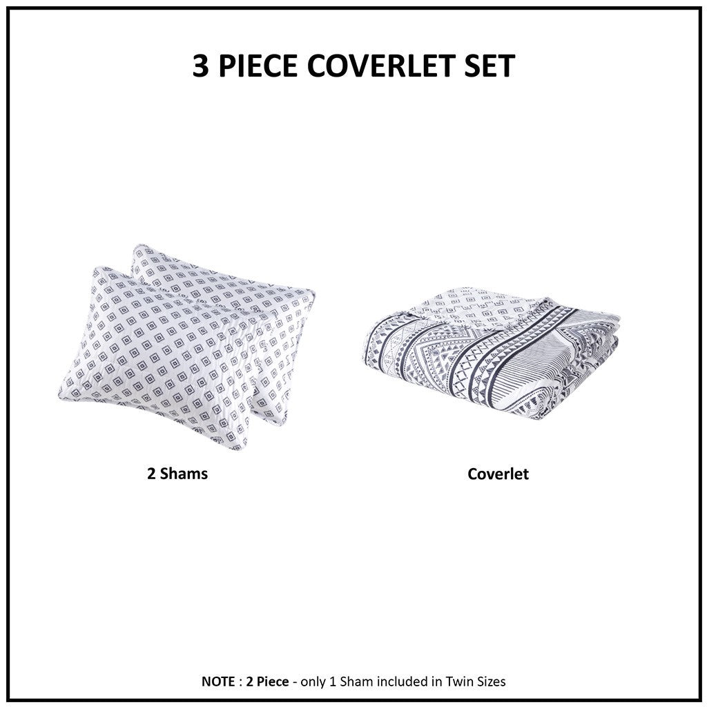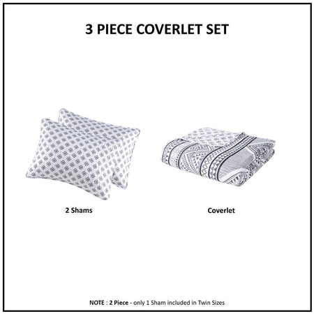 - Set includes coverlet and 2 shams (1 in Twin/TwinXL)
