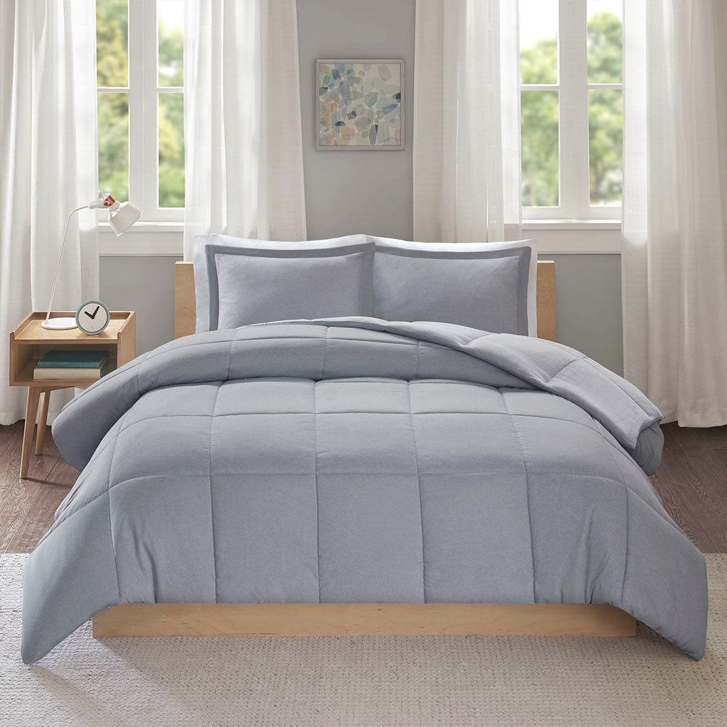 Get cozy and comfortable with the Intelligent Design Carson Reversible Plush to Heathered Microfiber Comforter Set. The face of the reversible comforter flaunts heathered yarn-dyed microfiber fabric in a rich grey hue that reverses to a frosted print plush, for an ultra-soft look and feel. Matching reversible sham(s) mirror the styling of the comforter and feature zipper closures, while an all-over box quilting on the plush comforter prevents the hypoallergenic down alternative filling from shifting. This down alternative comforter set is machine washable for easy care and is OEKO-TEX certified, meaning it does not contain any harmful substances or chemicals to ensure quality comfort and wellness. Set includes: 1 comforter and 2 shams (1 sham for Twin sizes). Items in the set may come in a rolled or compressed packaging, which will need to be fluffed up or steam ironed before use to remove wrinkles.